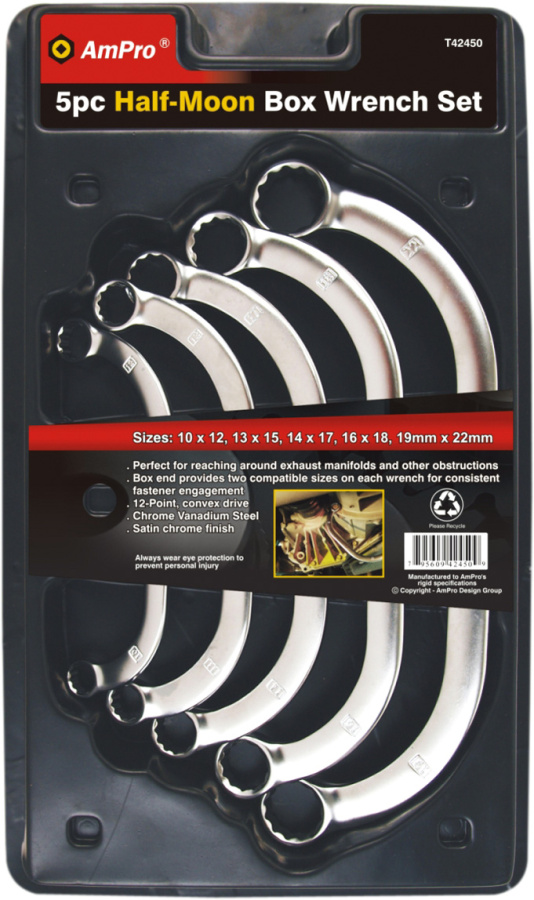 Приобрести T42450 Набор ключей накидных" Полумесяц" 5 предметов (10-22мм) от компании AmPro (Тайвань) из раздела Наборы ключей по цене 4 263 рублей.