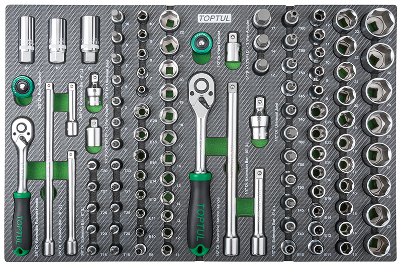 Набор головок и аксессуаров 3/8" и 1/2" 6-гр., 104 предмета в мягком ложементе (D) TOPTUL GEDA429 купить в Владивостоке и других городах России