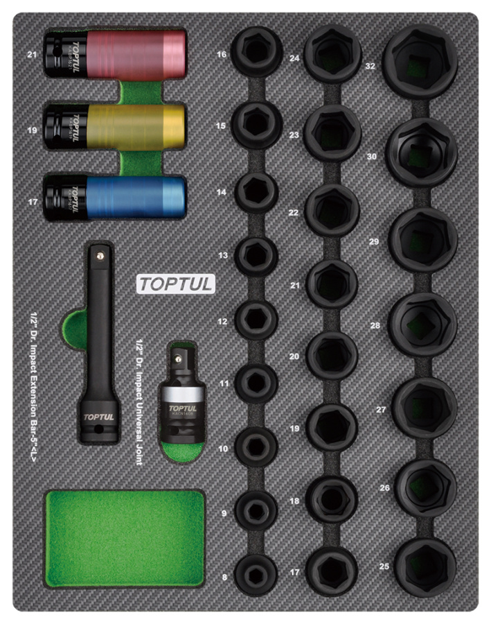 Набор ударных головок 1/2'' 8-32 мм, 29 предметов в мягком ложементе TOPTUL