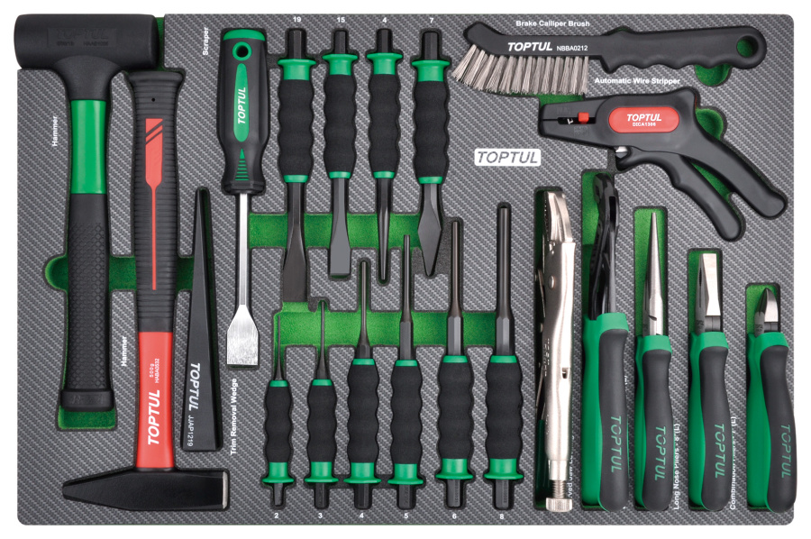 Набор инструментов, молотки, выколотки и губцевый, 21 пр. в мягком ложементе TOPTUL
