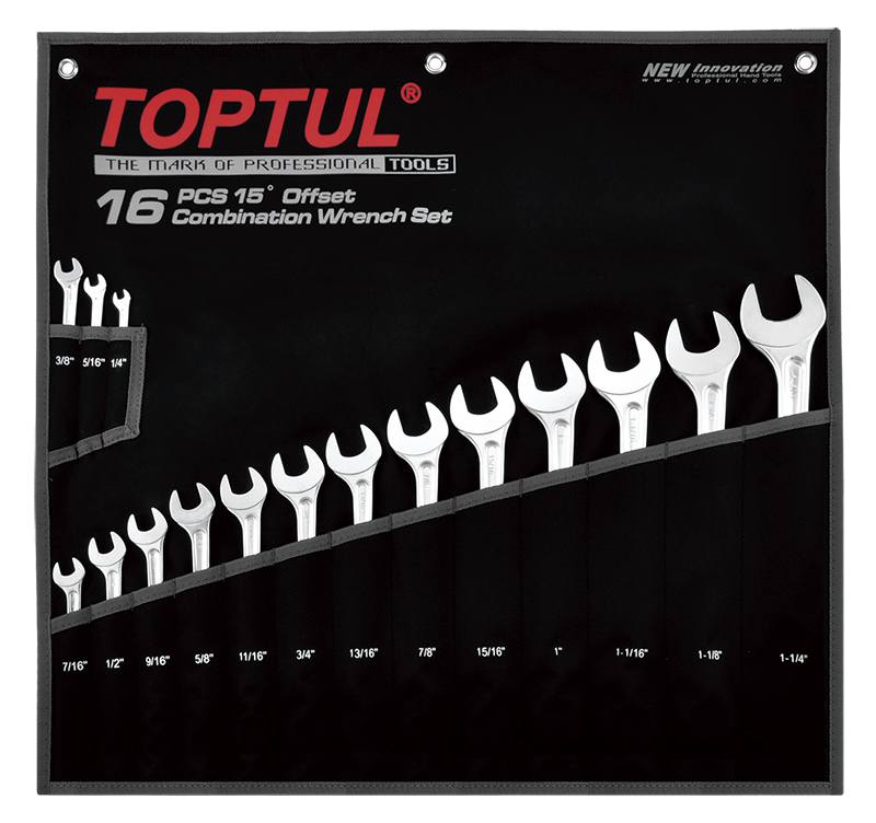 Набор ключей комбинированных дюймовых 1/4"-1-1/4", 16 предметов на полотне TOPTUL GPBX1601 купить в Владивостоке и других городах России