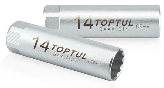 Приобрести Головка свечная 12-гранная 3/8" 14 мм L=63 мм с пружинным фиксатором TOPTUL BAAX1214 от компании из раздела Свечные головки по цене 629 рублей.